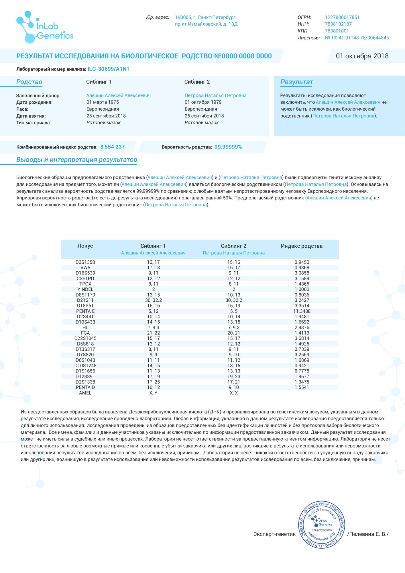 Мы используем большое количество уникальных аутосомных маркеров, проводим тест либо по Y-хромосоме, либо по мтДНК, в зависимости от каждого конкретного случая.