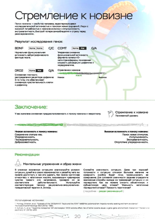 Этот ДНК анализ показывает влияние наиболее важных 10 генов на психическое и эмоциональное состояние. Именно они регулируют выработку гормонов, работу нейромедиаторов. Используйте знания о природных свойствах своего организма для борьбы со стрессом, повышения работоспособности и общего тонуса. Каждый человек индивидуален, поэтому мы рекомендуем пройти наш генетический нейро тест в Сарапуле.
